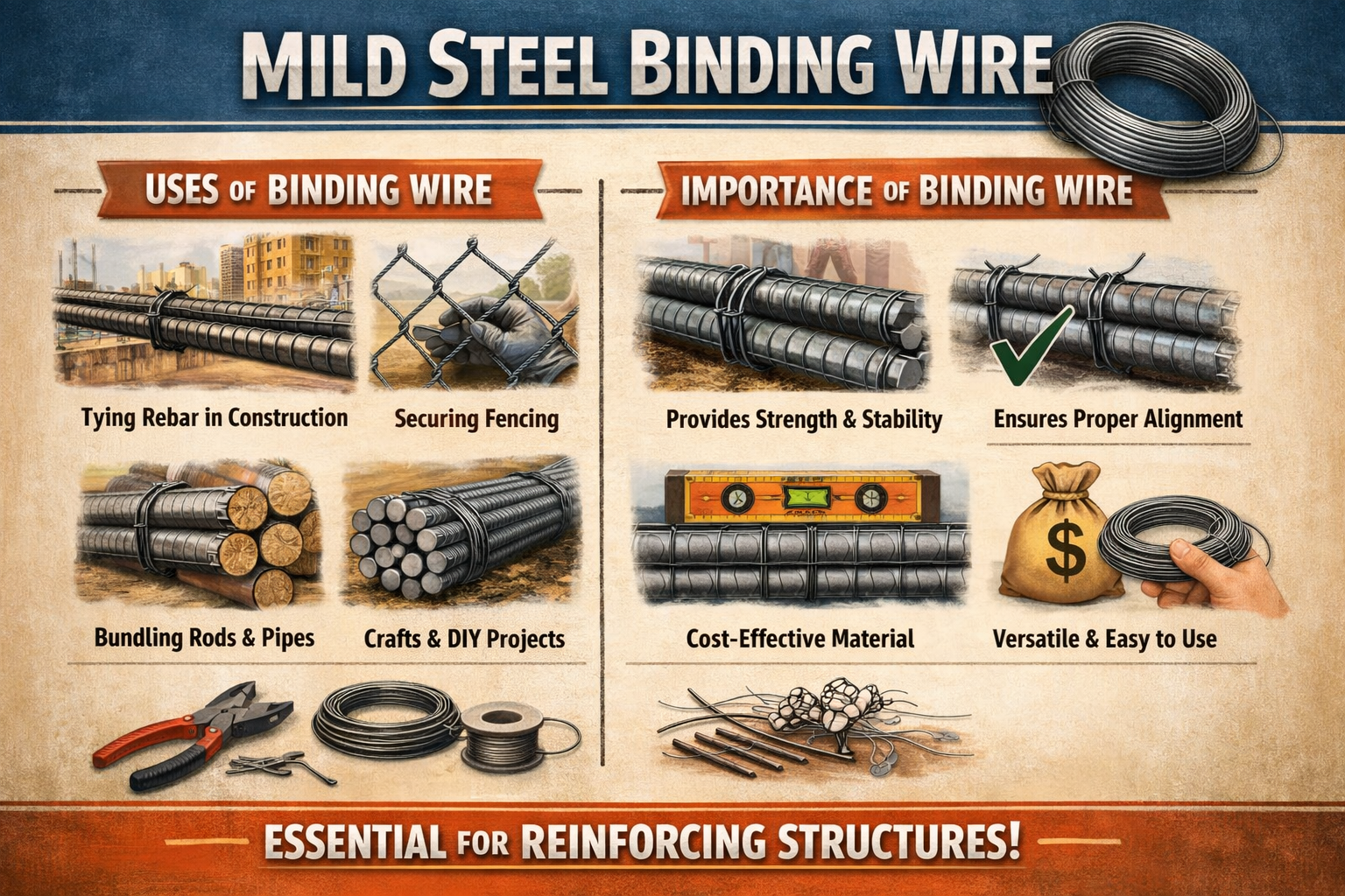 Even though the Binding Wire is a small thing, still it plays a big role. It holds steel bars tightly so they become strong during construction. If the construction base is not strong the building has a higher chance to collapse. This helps in making the structure strong and long-lasting. Using good quality wire from S K Wire Industries ensures better quality and performance.